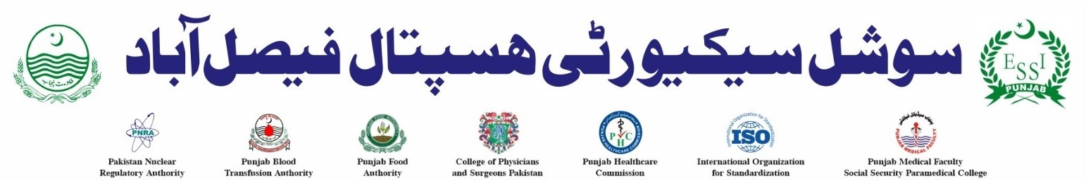 Social Security Hospital Faisalabad is a 300 bedded capacity multidisciplinary, secondary care hospital providing FCPS-II 04 Years Training in Medicine & General Surgery, situated at Main Hub of the City at Susan Road Madina Town Faisalabad. The population served belongs to employees of small to large scale industrial units and their dependents and cater in medical care about 1.5 Million people. The hospital is staffed with the learned clinical faculty of Pakistan Medical and Dental Council (PMDC), along with full strength of Junior Doctors, Nurses & Paramedics in all the Disciplines. Being located on the main traffic artery, the hospital has a very busy Accidents & Emergency Department. Large number of patients are attended by the Outpatients and the Diagnostic Departments. It provides Healthcare Services including Medicine, Surgery, Pediatrics, Cardiology, Urology, Orthopedics, Pathology, Radiology, Anesthesiology, Ophthalmology, ENT, Pulmonology, Oncology, Psychiatry & Psychology. It has all kinds of facilities including 24/7 Emergency and Ambulance availability, 06 Nos. well-equipped Operation Theatre, ICU, Dialysis Unit, fully functional Laboratory and Blood Bank Departments. The state of the art Dialysis Unit provide dialysis facility about 500 patients per month on modern fully functional dialysis machines. The hospital is continuously striving to upgrade and modernize its facilities in line with the emerging diagnostic and therapeutic needs. The hospital management and clinical staff has a special focus on quality assurance in provision of continuous medical services with aim to attain the pinnacle of healthcare system in public sector. Social Security Hospital Faisalabad is having a regular & valid License from Punjab Healthcare Commission. Social Security Paramedical College Faisalabad is affiliated with Punjab Medical Faculty Lahore for 04 disciplines like (Laboratory Technology, OT Technology, Radiology & Imaging Technology and Dispenser Course). It is also ISO (9001:2015) Certified hospital. Its Blood Bank is registered with Punjab Blood Transfusion Authority Lahore. Social Security Hospital Madina Town, Faisalabad is also having a valid License of Radiology from Pakistan Nuclear Regulatory Authority for 05 Radiation Apparatuses (01 C-Arm & 04 X-Ray Machines). This hospital is also having a valid License of Water Plant from Punjab Food Authority.
